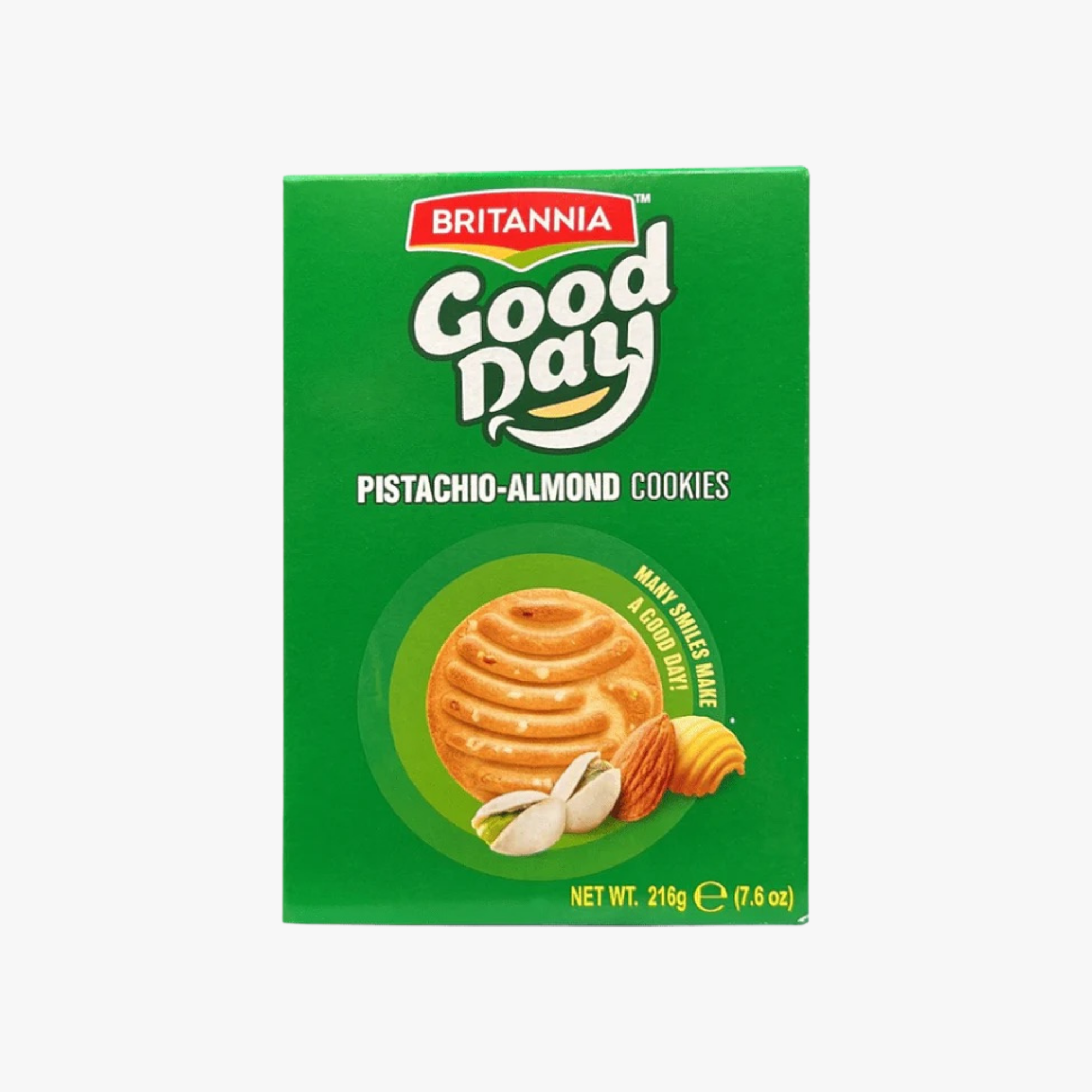 Good Day pistachio almond biscuits with a rich nutty flavor. Ideal for tea-time and casual snacking. Offers a crunchy texture with a premium taste. Made using selected ingredients for quality. Suitable for all occasions. Packed to maintain freshness.